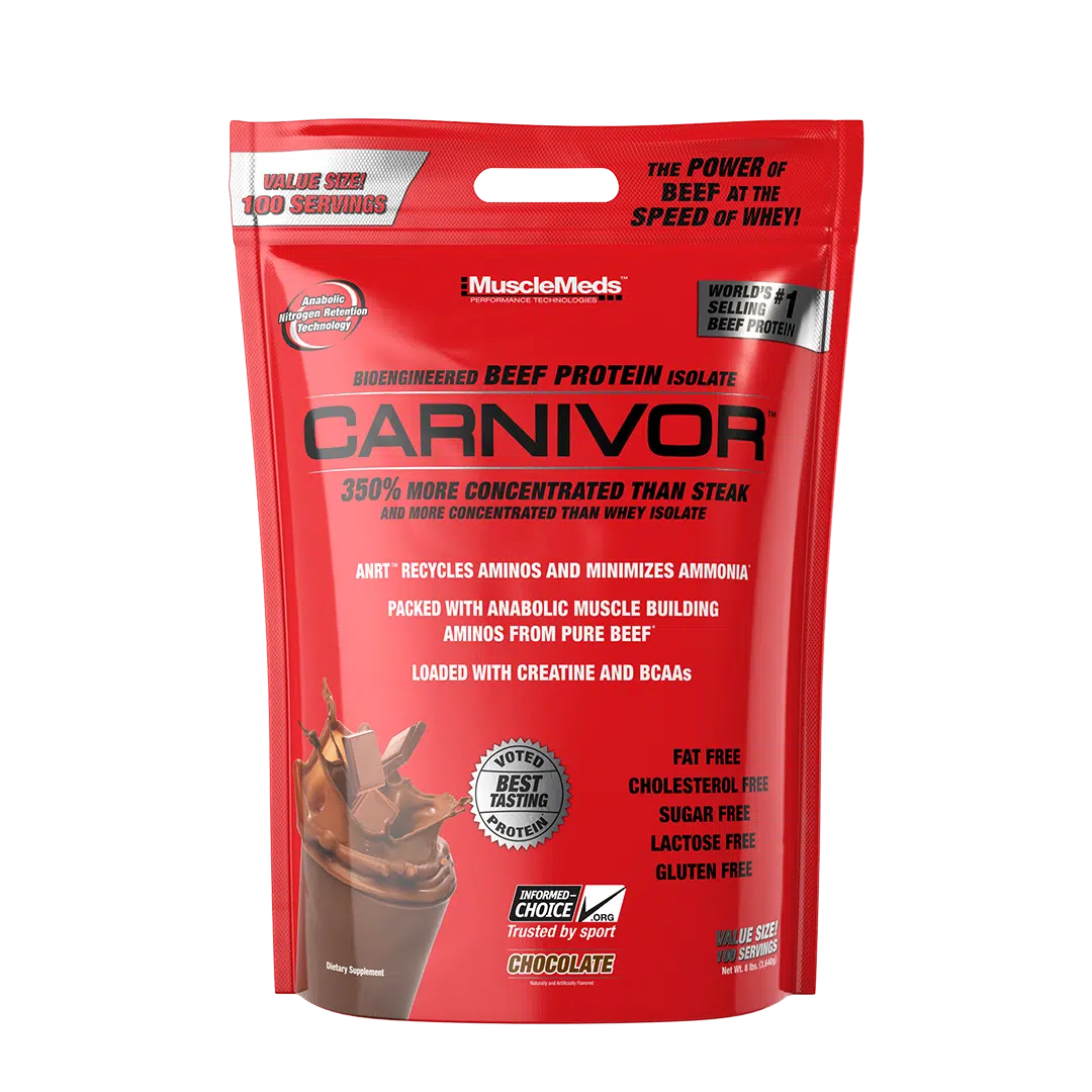 Uno de los atributos positivos de comer carne vacuna es que poseen un alto contenido de creatina. La carne de vacuno es una de las mejores fuentes naturales de creatina. Para impulstar la activación de células voluminizadores anabólicas y sentir los efectos de la creatina aún más, cada porción de Carnivor™ suministra 20 veces más creatina que las fuentes de alimientos naturales para saturar los músculos de fuerza explosiva y fomentar un crecimiento espontáneo.