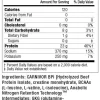 | Otros ingredientes: Carnivor BPI ™ (hidrolizado aislado de proteínas de carne, monohidrato de creatina, aminoácidos ramificados (leucina, L-Valina, L-isoleucina), gelatina hidrolizada, AKG (alfa-cetoglutarato), OKG (ornitina-alfa-cetoglutarato), ANRT™ Intermedios, maltodextrina, sucralosa, acesulfame de potasio, lecitina, CCI (alfa-cetoisocaproato), GKG (Glutamina Alfa-cetoglutarato), FD & C Rojo # 40, Sabor natural y artificial, ácido cítrico. Sin lactosa, colesterol, ni grasa. | ||