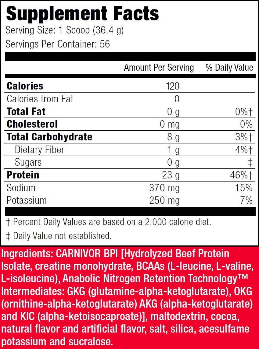 Utilizando unas nuevas y avanzadas tecnologías de extracción, aclarado, hidrólisis y aislamiento, la proteína biodesarrollada y aislada de carne de vaca que contiene Carnivor™ proporciona la potencia para formar músculo que aporta la carne con unos niveles de aminoácidos superiores al resto de las fuentes proteicas empleadas en otros suplementos, incluyendo las proteínas de suero (whey), soja, leche y huevos.