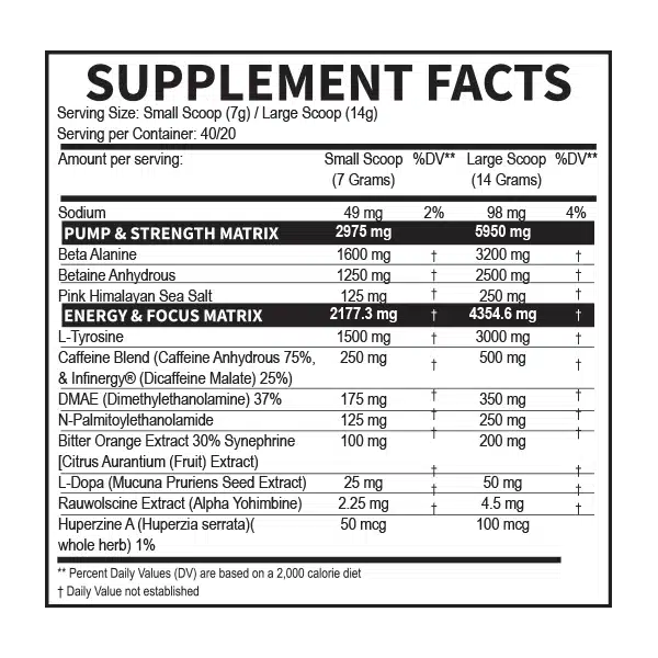 Formulado para ser un catalizador sin BS, de energía de alta intensidad y de conducción de enfoque, Venom® no deja nada al azar, abordando todos los ángulos de optimización de su potencial de rendimiento. Con energía de alta intensidad impulsada por 375 mg de cafeína anhidra y 50 mg de Infinergy® (malato de dicafeína) y un enfoque impulsado aún más por una combinación sinérgica de L-tirosina y huperzina, estarás encerrado para aplastar cada entrenamiento.