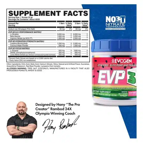 EVP-3D es perfecto para aquellos que aún quieren concentración mental pero son sensibles a la cafeína y los estimulantes. Es ideal para las personas que entrenan tarde en la noche y necesitan poder dormir después del entrenamiento. Esto ayuda a garantizar el descanso adecuado para recuperar y desarrollar músculo de calidad. También es una solución excelente para aquellos que se esfuerzan mucho con los estimulantes durante todo el año y necesitan tomarse un descanso al permitir que sus sistemas se reinicien.