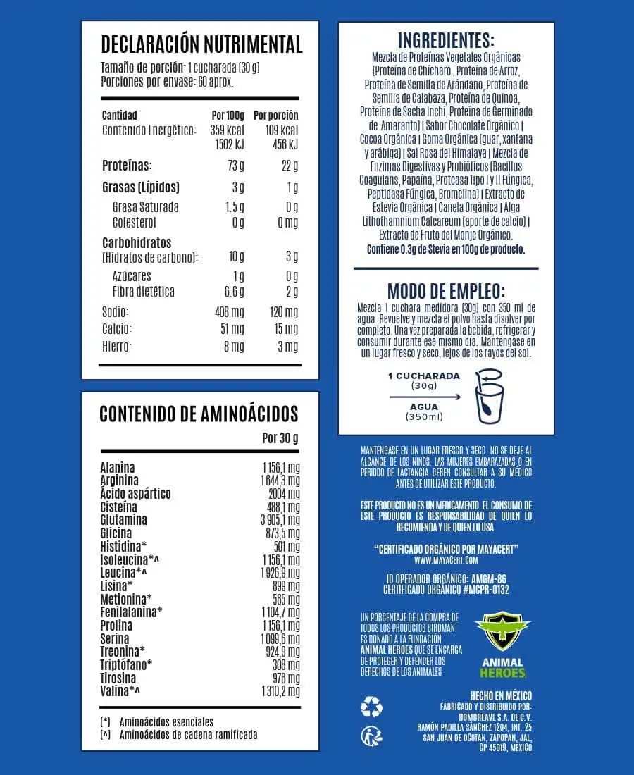 • Proteína vegetariana, proteina vegana, libre de lacteos, gluten y soya. Cero químicos.