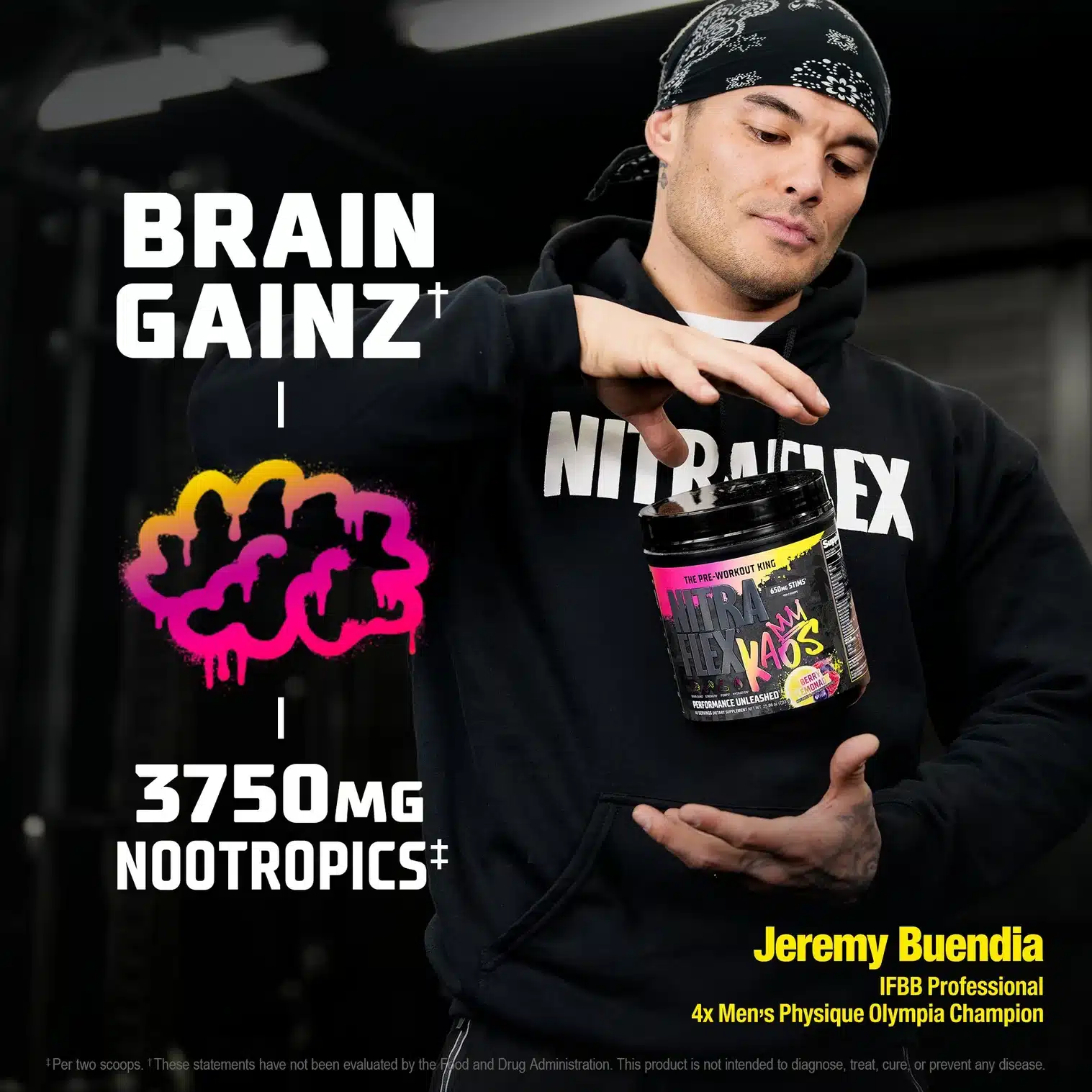 Increíbles bombeos musculares y apoyo a la hidratación, Nitraflex KAOS es el único pre-entrenamiento digno de entrar en tu reino
