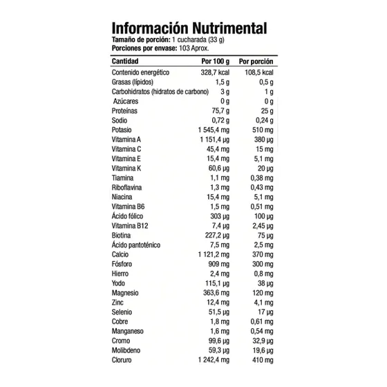 - Contiene Vitaminas y Minerales, los cuales en conjunto ayudan a nutrir al organismo.