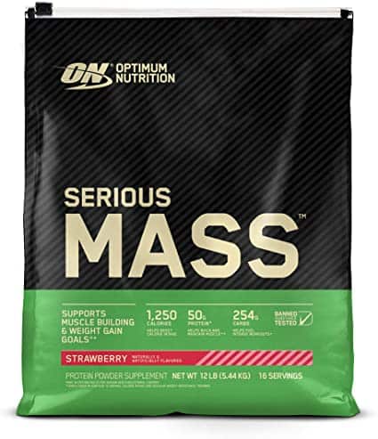 Serious Mass de Optimum Nutrition es el único ganador de peso que te aportará 252 gr. de cabohidratos por servicio además de 50 gr. de proteína, vitaminas y minerales, además de creatina y glutamina.