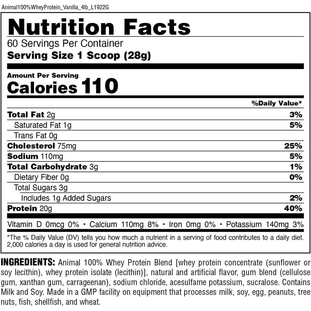 - Proteína de suero de leche de digestión rápida con 20 g por porción.
