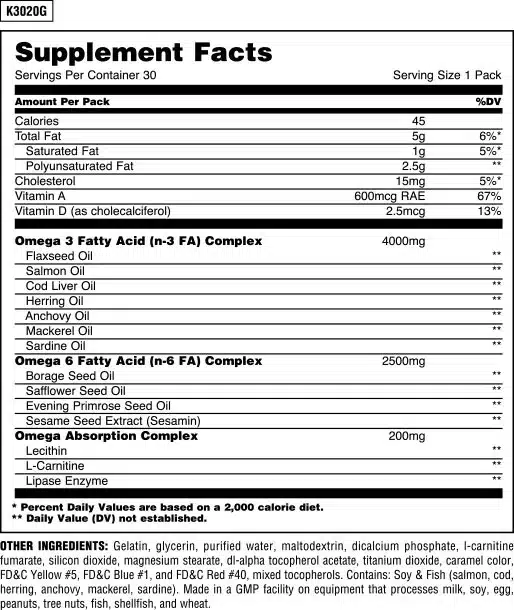 Animal Omega de Universal Nutrition ofrece una excelente combinación de Omegas 3 y 6, combinados con nutrientes que facilitan su absorción y aportan muchos más beneficios.