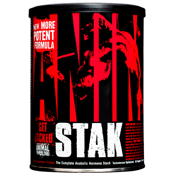 Animal Stak es el producto prohormonal más reciente de UNIVERSAL NUTRITION. Decimos que es un producto exclusivo porque sólo Animal Stak contiene los componentes vasodilatadores que ayudan a mejorar la circulación completa del sistema y a distribuir los poderosos ingredientes de esta fórmula justo por donde su cuerpo más lo necesita. Básicamente, los vasodilatadores de Animal Stak inducen un efecto de voluminización vaso muscular para así transportar una cantidad mucho mayor de nutrientes y facilitar su retención. Gracias a esta capacidad de Animal Stak, de abastecer los músculos de forma rápida, la suplementación con vasodilatadores le proporciona una mayor resistencia durante el trabajo muscular, un gran aumento de fuerza, una recuperación más rápida y un crecimiento muscular acelerado.